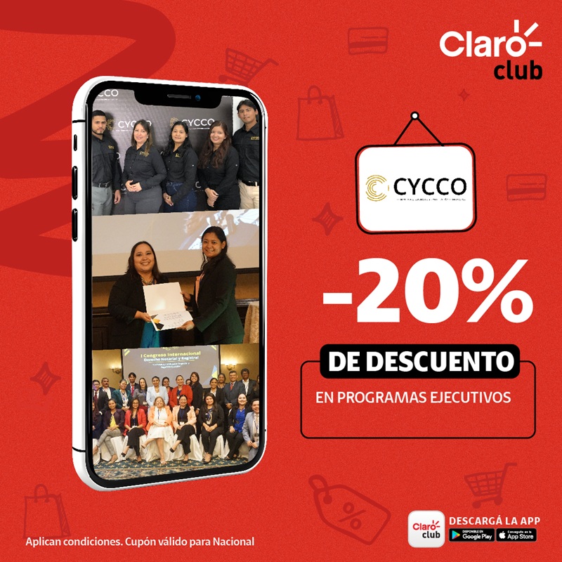4 de febrero de 2025 / A través de Claro Club, obtén un 20% de descuento en los programas ejecutivos de la empresa Consultoría, Auditoría y Capacitación Corporativa (CYCCO), una excelente oportunidad para potenciar tu carrera con educación de calidad. Este beneficio está diseñado para que profesionales y líderes puedan acceder a programas especializados que los impulsen al éxito.
