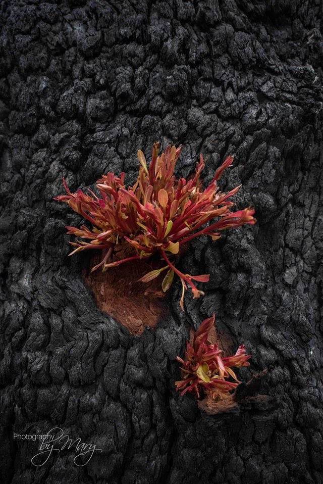 Pequeñas flores color rosa fueron capturadas por la fotógrafa Mary Voorwinde en la zona de New South Wales, uno de los lugares que fue sumamente afectado, pues en el lugar solo se aprecian cenizas y cadáveres calcinados de diversos mamíferos.