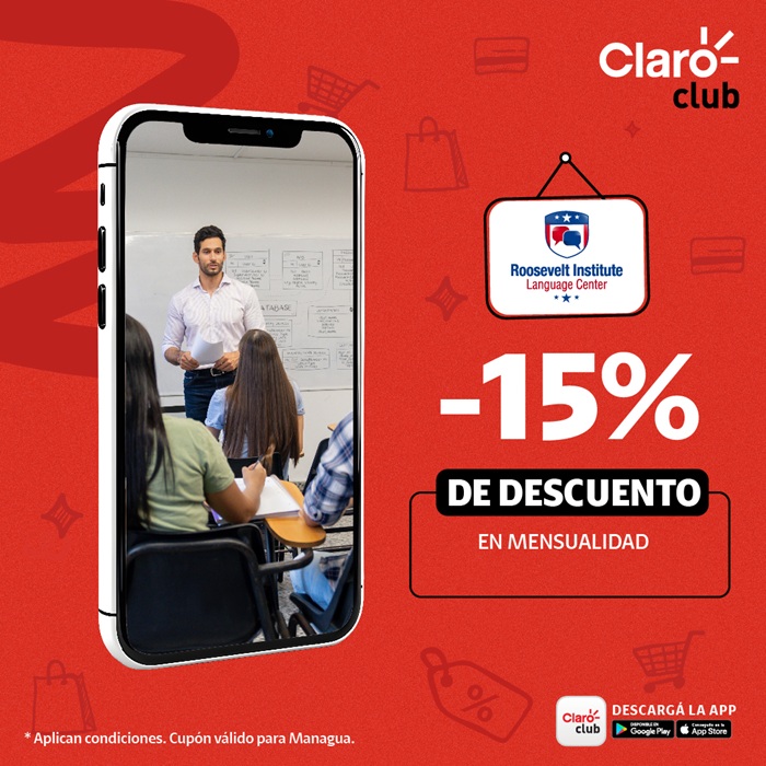 27 de enero de 2025 / Con Claro Club obtén un 15% de descuento en la mensualidad de los programas educativos del Roosevelt Institute, líder en la enseñanza del idioma inglés en Nicaragua.. Este beneficio está diseñado para que continúes tu formación con una institución que prioriza la excelencia académica y el desarrollo integral de competencias profesionales.