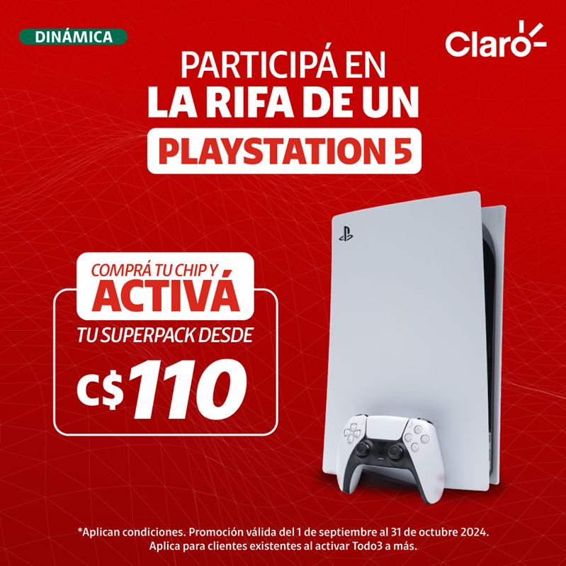 Los participantes tienen la oportunidad de ganar una consola PlayStation 5, ideal para disfrutar de la mejor experiencia en videojuegos. Los nuevos clientes que compren un CHIP prepago con cualquier paquete Todo Incluido 3, 4 o 5, o los clientes existentes que recarguen su línea con un monto igual o superior a C$110.00, estarán automáticamente participando.