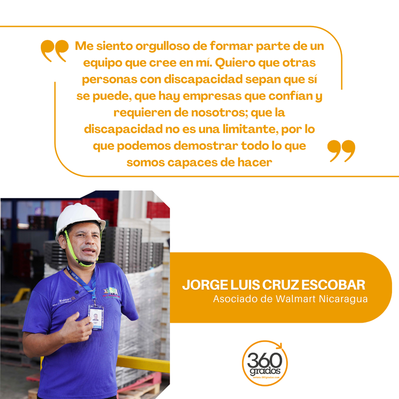 “Jorge Luis nos permite romper estereotipos y fomentar la empatía en el equipo. Es un asociado entusiasta, que nunca se limita y aporta al desarrollo colectivo. Su trayectoria fortalece a la empresa y refuerza una cultura de pertenencia y aprendizaje continuo”, reconoció María Marta Rodríguez, especialista sénior de Asuntos Corporativos de Walmart Nicaragua.