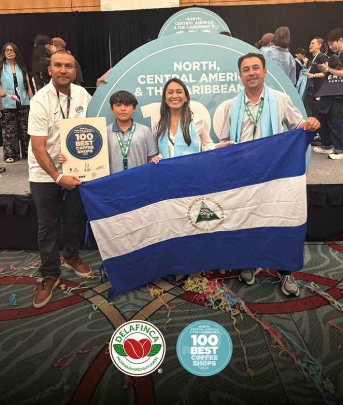 3 del abril del 2026, San Diego, Estados Unidos. – Delafinca Specialty Coffee continúa posicionando al café nicaragüense en los más altos escenarios internacionales. En la reciente gala de los 100 Best Coffee Shops – North, Central America & The Caribbean, celebrada en San Diego, California, la marca alcanzó el puesto número 12, ubicándose entre las mejores cafeterías del continente en uno de los rankings más exigentes del café de especialidad.