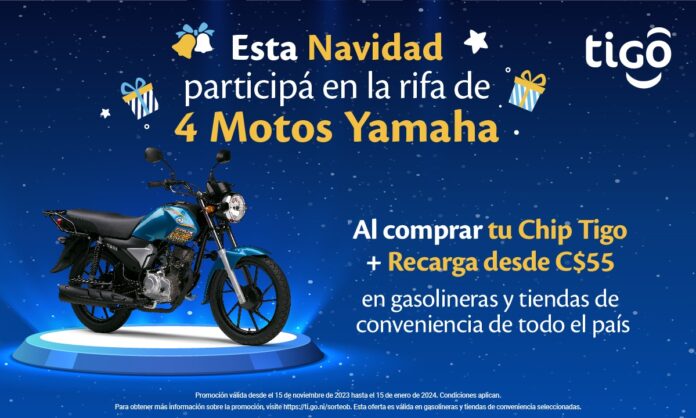 (Nicaragua, noviembre 2023).- Tigo Nicaragua, empresa líder en servicios de conectividad móvil en alianza con bancos seleccionados del país así como con gasolineras y tiendas de conveniencia en toda Nicaragua, presenta a sus clientes y público en general una nueva dinámica participativa a través de la que se rifarán un total de ocho motocicletas Yamaha Crux 110 Street estilo Sport modelo mensajera 2024.