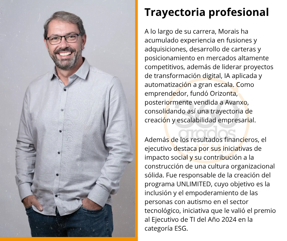 Con más de tres décadas de experiencia en tecnología, innovación y transformación digital, Morais ha desarrollado una trayectoria profesional marcada por el liderazgo de operaciones en expansión, el desarrollo de mercados y la conexión entre estrategia y ejecución. En su etapa más reciente en Globant, donde se desempeñó como Director General para Brasil y Latinoamérica, lideró un aumento del 800% en los ingresos entre 2019 y 2025, además de expandir las operaciones a más de 1800 profesionales en el país.