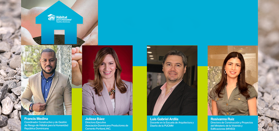 Este espacio se desarrolló a través de las ponencias de Julissa Báez, directora ejecutiva de la Asociación Dominicana de Productores de Cemento (Adocem); el arquitecto Luis Gabriel Ardila, docente en la Escuela de Arquitectura y Diseño de la PUCMM; la ingeniera Rosivanna Ruiz, directora de construcción y proyectos del Ministerio de la Vivienda y Edificaciones (MIVED), y en representación de Hábitat Dominicana, el ingeniero Francis Medina, coordinador constructivo y de gestión de riesgo.