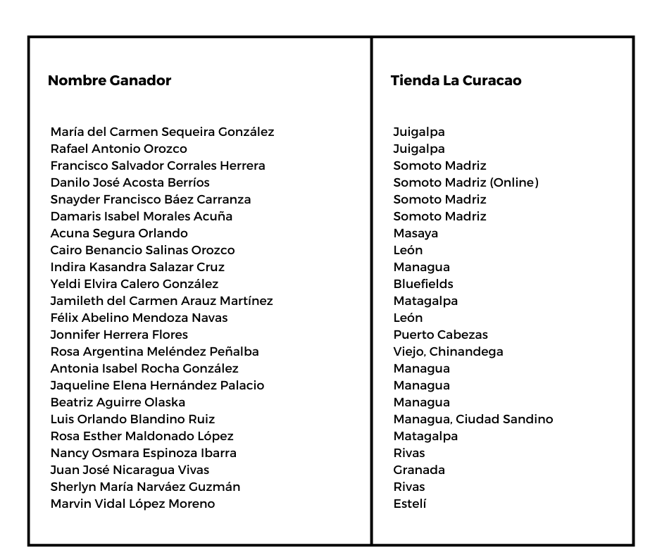 Para más detalles sobre la promoción, visita cualquier tienda de La Curacao o nuestra página oficial de Facebook: La Curacao Nicaragua.