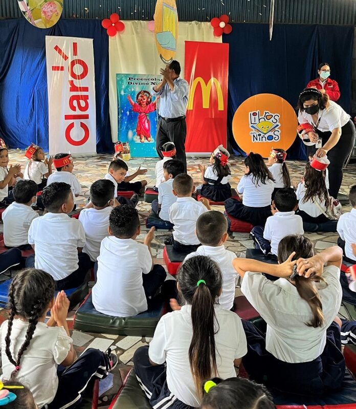 En el marco del “Día del Niño”, el Centro Preventivo Divino Niño de la ciudad de Managua, la organización Libros para Niños, restaurantes McDonald ‘s y Claro Nicaragua suman esfuerzos para celebrar este día con estudiantes del centro escolar, a través de sesiones de lecturas infantiles, desayunos, obsequios y sorpresas.
