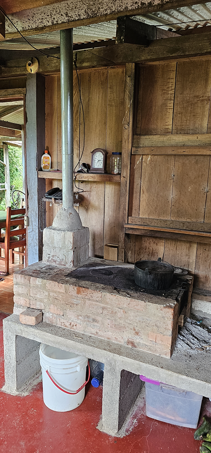 El fogón “raro” se llama Ecofogón y es una tecnología amigable con el medio ambiente, con mucha más eficiencia, reduce el consumo de leña, el humo y la generación de hollín (en paredes y techos del área de cocina), que afectan la salud de las personas que usan fogones tradicionales.
