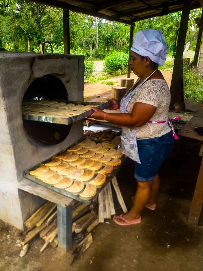 “Durante la semana hago 20 enchiladas diario para vender en el muelle a los pasajeros que viajan en la plana (lancha) con destino a San Carlos, que sale de domingo a viernes a las 9 de la mañana”, dijo Karen. Ahora ya no gasta en comprar gas butano para cocinar las enchiladas.