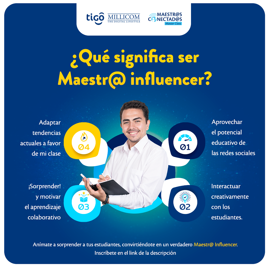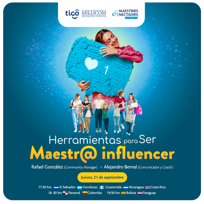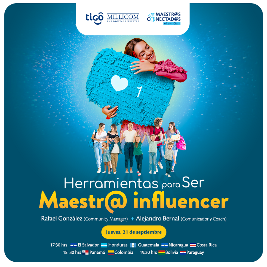 Para unirse a la Masterclass este jueves 21 de septiembre, los docentes interesados pueden inscribirse sin costo en: y conectarse a las 5:30 de la tarde para participar de esta novedosa y creativa propuesta que Millicom (Tigo), pone a su disposición.