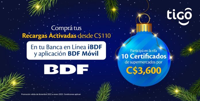 Nicaragua, diciembre de 2022.- Tigo continúa brindando a sus clientes los mejores beneficios y una excelente experiencia de servicio, esta vez sumando dos nuevos puntos de recarga en alianza con Banco de Finanzas (BDF), a través de los cuales los nicaragüenses podrán hacer Recargas Activadas usando la Banca en línea iBDF y la app BDF Móvil.