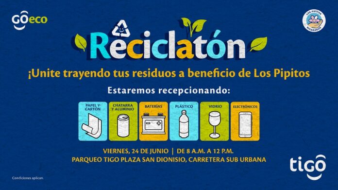 Con el fin de incentivar la cultura de reciclaje, Tigo Nicaragua invita a sus clientes y colaboradores a sumarse al Reciclatón Go Eco, donde se recolectará papel, cartón, plásticos, chatarra, aluminio, baterías de vehículos, desechos electrónicos como electrodomésticos, celulares, accesorios en mal estado o en desuso.