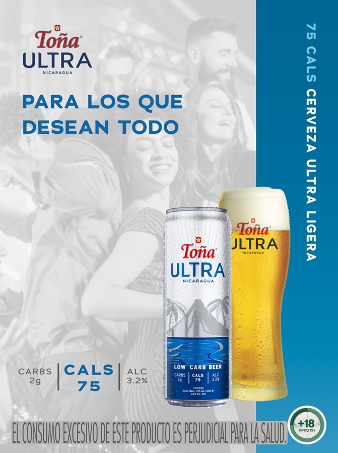Además de ser un referente en Nicaragua, Toña Ultra se posiciona como la primera cerveza ULTRA ligera de exportación en Centroamérica, ya disponible en países como El Salvador, Honduras y Panamá.